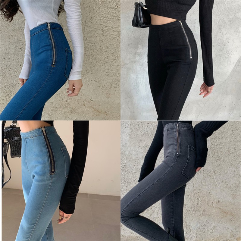 Product Name: High waist side zip jeans best sale
