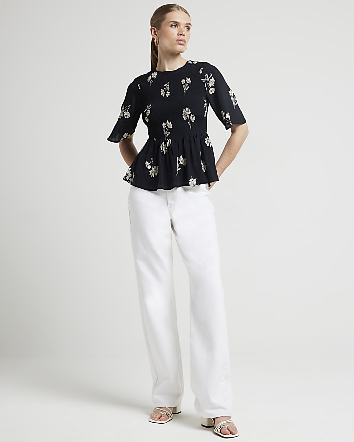 Product Name: Black floral peplum top best sale